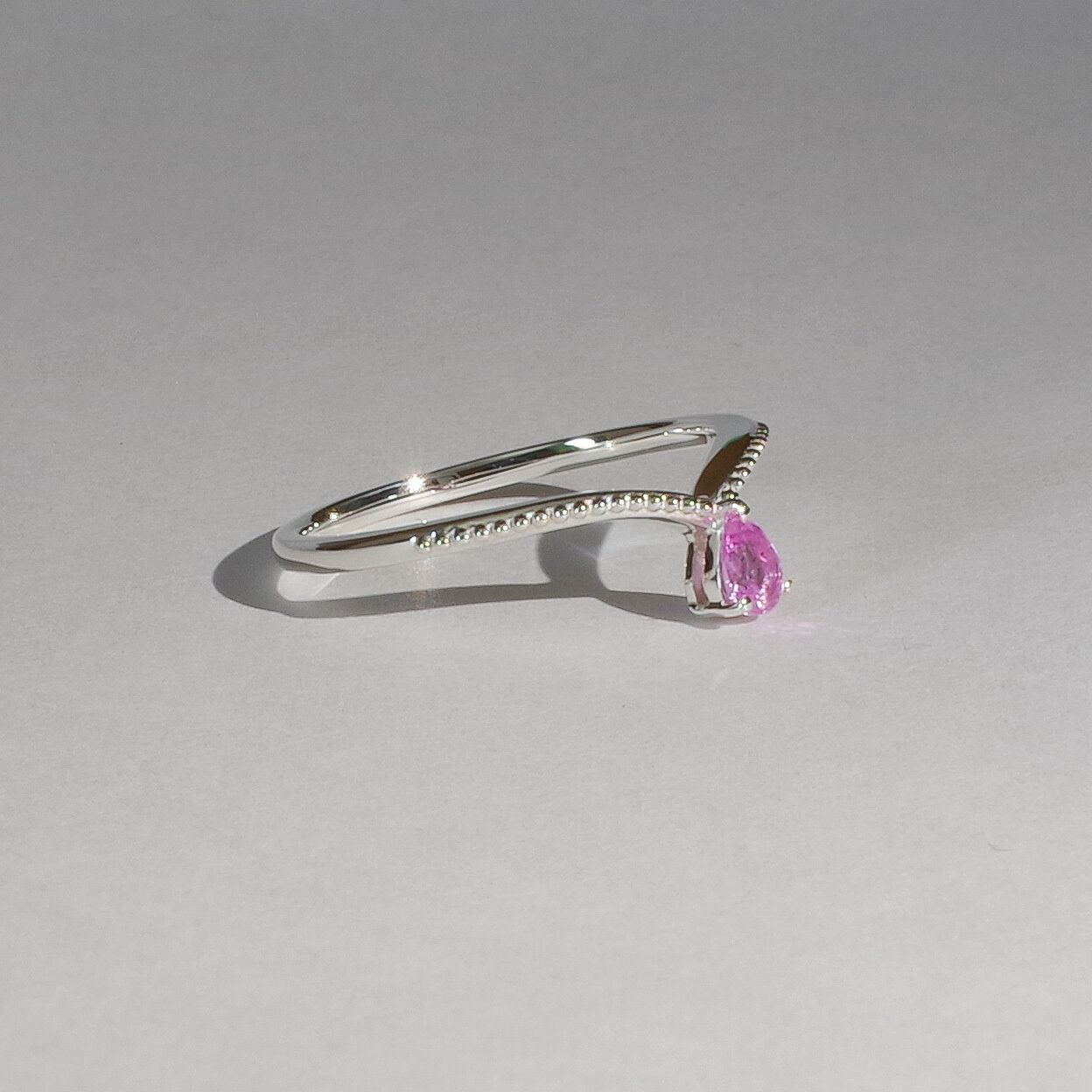V字のアームに小さな粒が並んだリング